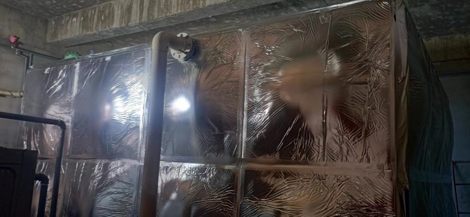 我公司承接的廊坊三河市拆舊換新不銹鋼消防保溫水箱在原有條形基礎上安裝,和預留管道完結組裝,經過安裝師傅一天多的努力已經安裝試水完成,客戶也對我們的產品質量和安裝服務非常滿意,給予公司很高的評價。現場圖如下: