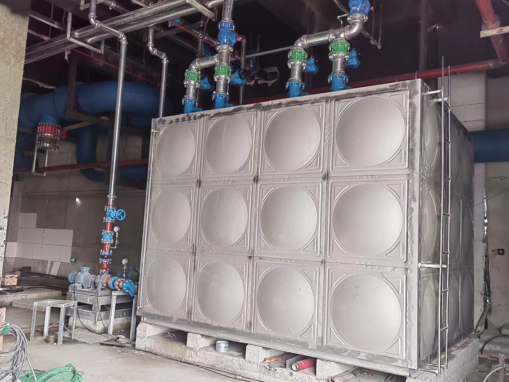 五、易于現場安裝:焊接不銹鋼消防水箱用于抑制植物,現場焊接的方式。因為不銹鋼水箱中使用內部焊接,因此罐可以放置在靠墻,其空間是有限的三個側面對用戶是非常有利的。