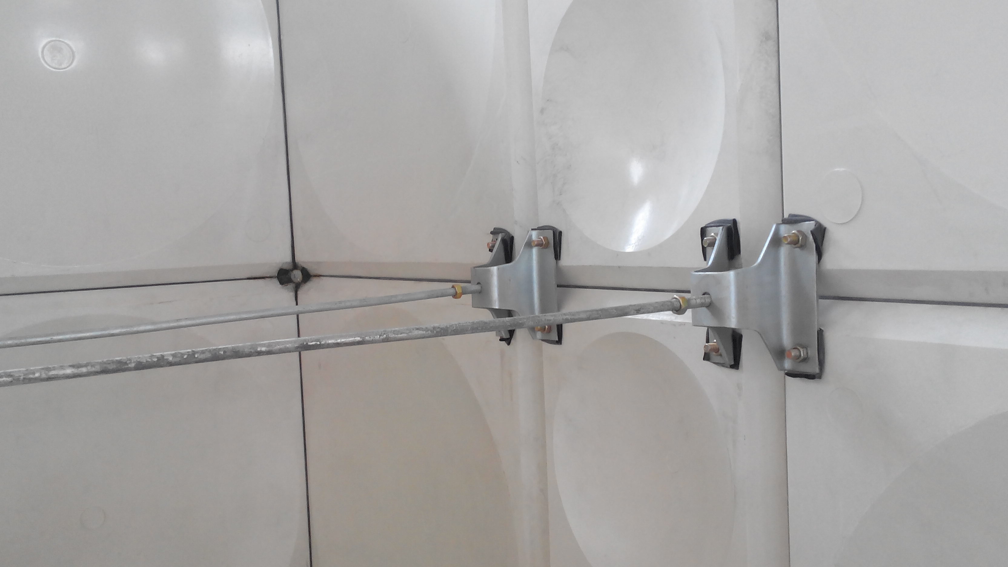 1、固定底板:將經檢測合格的玻璃鋼水箱底板點焊在槽鋼底 架上,要求固定于底架的中部,這樣更有利于固定。